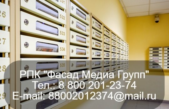 РПК «Фасад Медиа Групп» напечатала и разместила рекламные листовки на стендах, установленных в подъездах многоквартирных домов. Период размещения рекламы – 15 дней. Охвачены различные районы города
