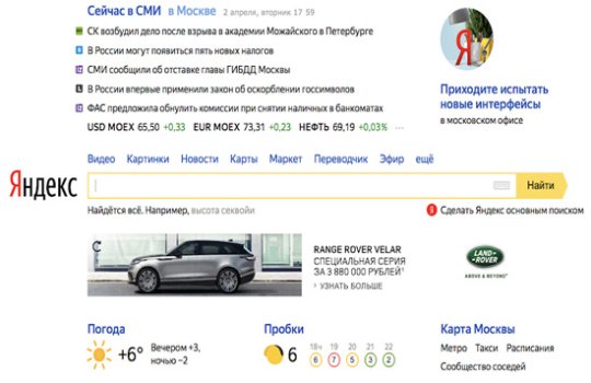 Пример баннера на главной странице в Яндексе представлен ниже: