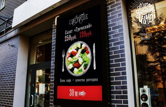 Примеры наших работ при размещении рекламы в кафе представлены ниже: